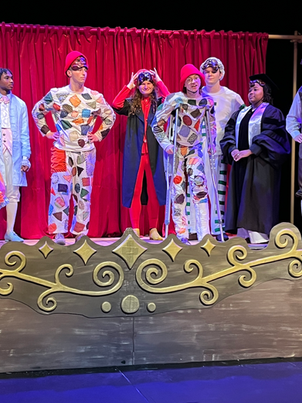 I began my research process by creating a list of research goals. I like to use casual websites like Pinterest and Reddit in my research process in addition to articles and images from across the web. Pinterest uses an algorithm that shows a feed related to recent searches and saves, so I am able to easily find inspiration that aligns with my personal style, as well as related images I may not have thought to specifically search for. I also like to use forum websites like Reddit to read about other designers' experiences with similar shows and styles of sets. Here is some of the information I gathered from several sources that helped me create my design: About Commedia: Commedia dell'arte is a style of theatre that was popularized during the Italian renaissance. It was intended to be viewed by the common man and was performed in the street on a simple wooden platform with some sort of curtain or tent to divide the platform into both a stage and a backstage. These shows are highly interactive due to the nature of theatre at the time. the audience is expected to talk back and interact with the characters. The sets are typically raised in order to allow a crowd to gather around in the street and be able to see what is happening. What makes Commedia so unique is its use of stock characters, which correspond to masks that the actors would wear. These characters could be found in all sorts of different plays, but they would always be the same character archetypes. Some examples of Commedia stock characters include Arlecchino or Truffaldino, the hungry servant, Sir Pantalone, the grumpy old man, Brighella, the butler/inkeeper, and Zanni, the jester-like servant. Commedia was most popular during a time when theatre design was not really practiced, so modern commedia designers, especially lighting and scenic designers, have to get creative with their work. About Servant: "The Servant of Two Masters" was written in the 1700s by Carlo Goldoni as an attempt to revive and repopularize the dying art of commedia dell'arte. The show includes a cast of half stock characters and half original characters, and features highly progressive themes for its time, such as criticism of the treatment of servants and women. By the time Servant was written, women were allowed to act onstage. The play features strong themes of female empowerment that still deliver a strong impact to this day. My direction: The first thing I noticed about traditional Commedia sets was that they reminded me of the stage in Esmerelda's dance scene in Disney's "Hunchback of Notre Dame." I ended up including stills from the movie in my reference images. I also noticed an opportunity to utilize my knowledge of painting wood grain. My school had not had a scenic painting class in several years, so most of my classmates had never had experience with it. I wanted to be able to share my painting knowledge through this process in hopes to push for more paint-heavy designs in the future. I also decided to include some personal flair in this design in the form of a decorative front piece to hide the footlights, and three giant flats with an Italian street painted on them to frame the set. I wanted the audience to feel like they were being transported to an Italian street in the renaissance period, seeing a Commedia show during its peak. The director requested that I include powerlines in the backdrop flats in order to tie the show back to the modern era, creating an unclear time period and making the show more applicable to the audience. We agreed that we wanted to avoid the fourth wall that historical plays such as Shakespeare's work tend to create between the audience and the characters. I find that old plays tend to be polarizing because not everyone in the audience understands the language and dynamic of the time period. Solinas and the design team aimed to blend the historical significance of this show with small elements of modern flair to fully capture the audience for the full duration of the show.